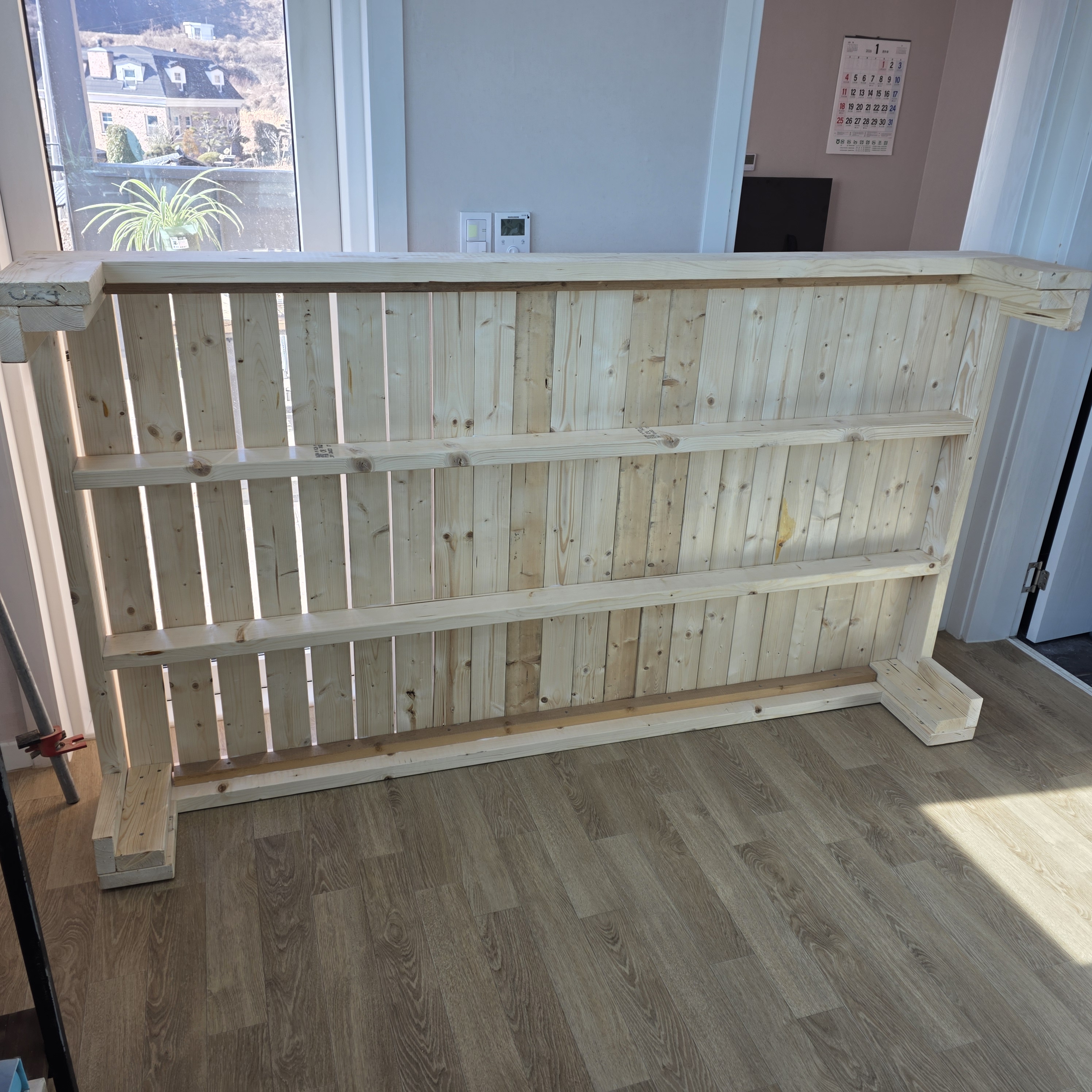 나무 조립하여 침대프레임 제작을 했다.