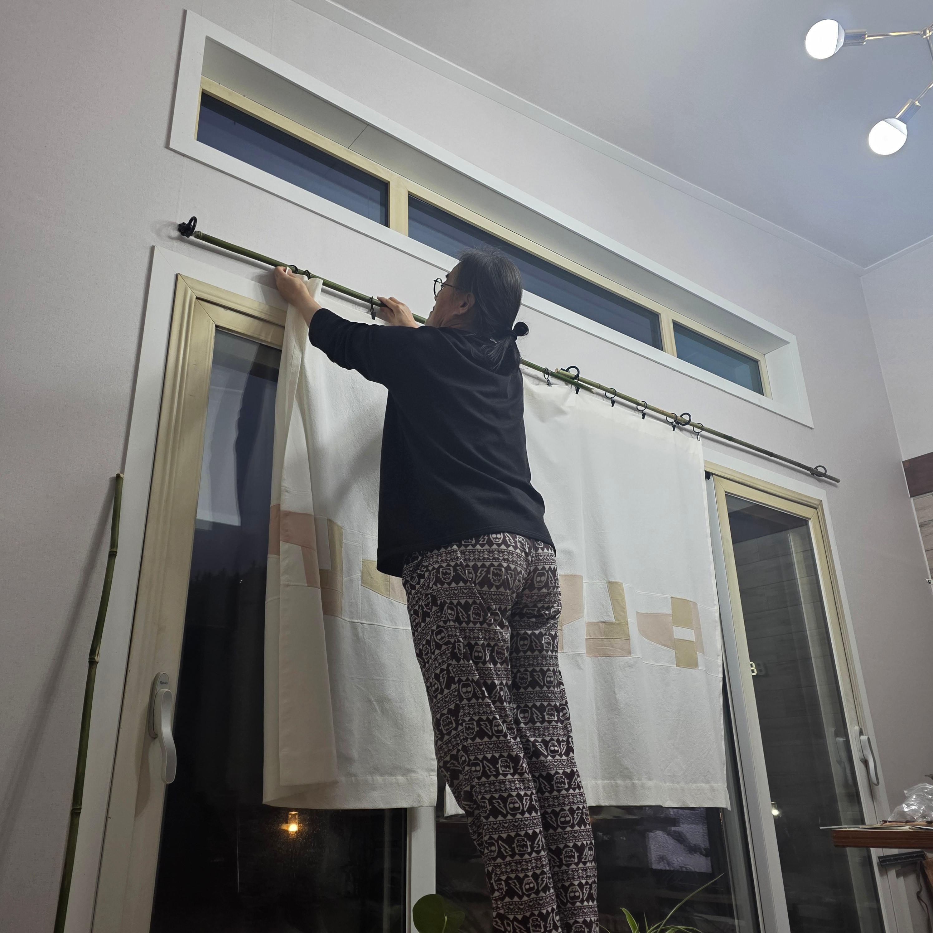 열심히 만든 커튼 달고 있습니