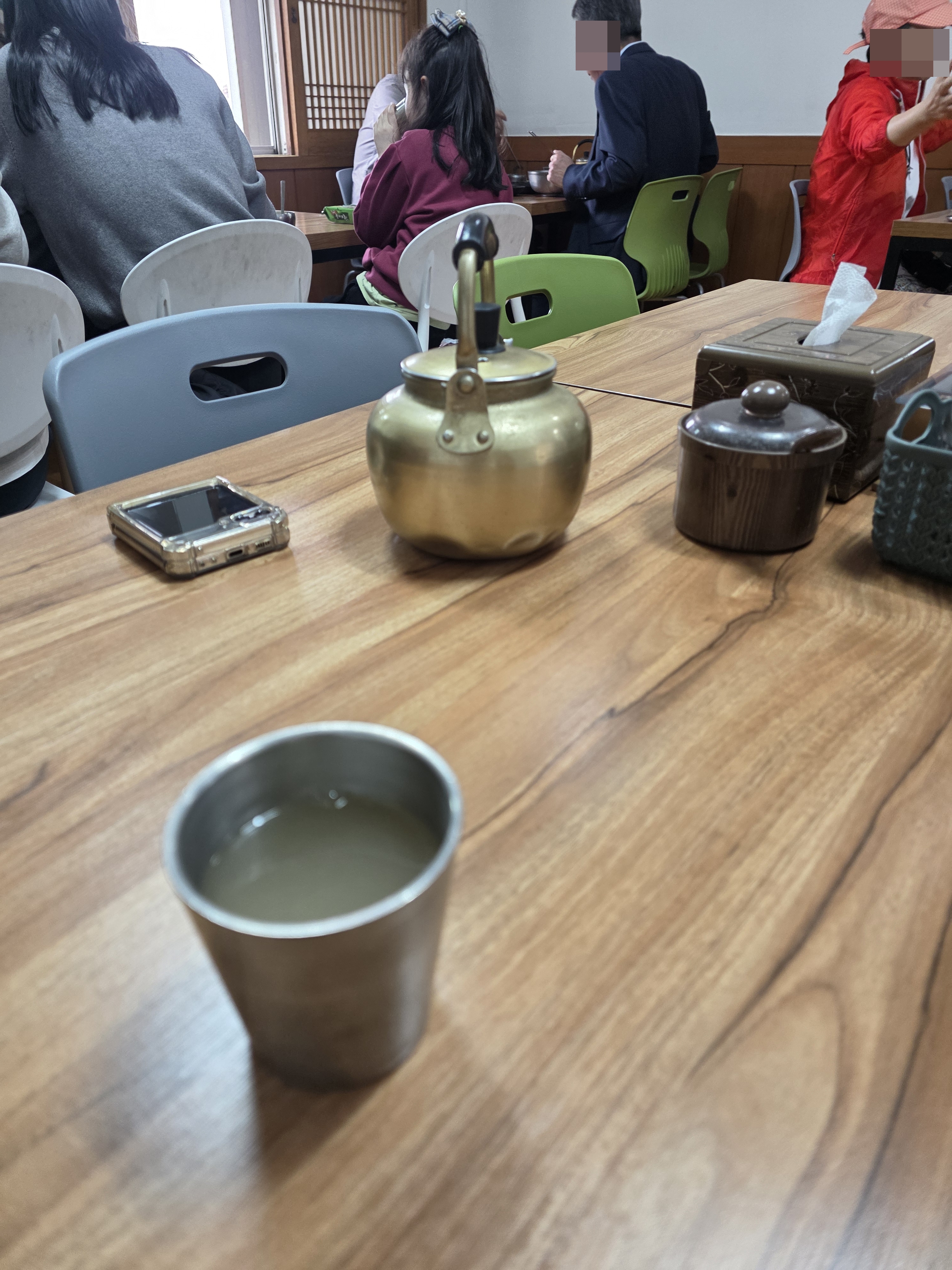 들어오자마자 숭늉을 작은 주전자에 넣어준다